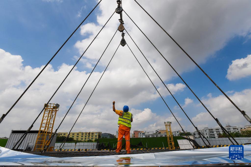 10月3日,中铁十一局的工人在广花城际铁路白云城市中心站施工。