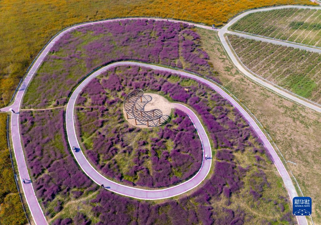 10月3日,游客在江苏省淮安市百花园游玩(无人机照片)。