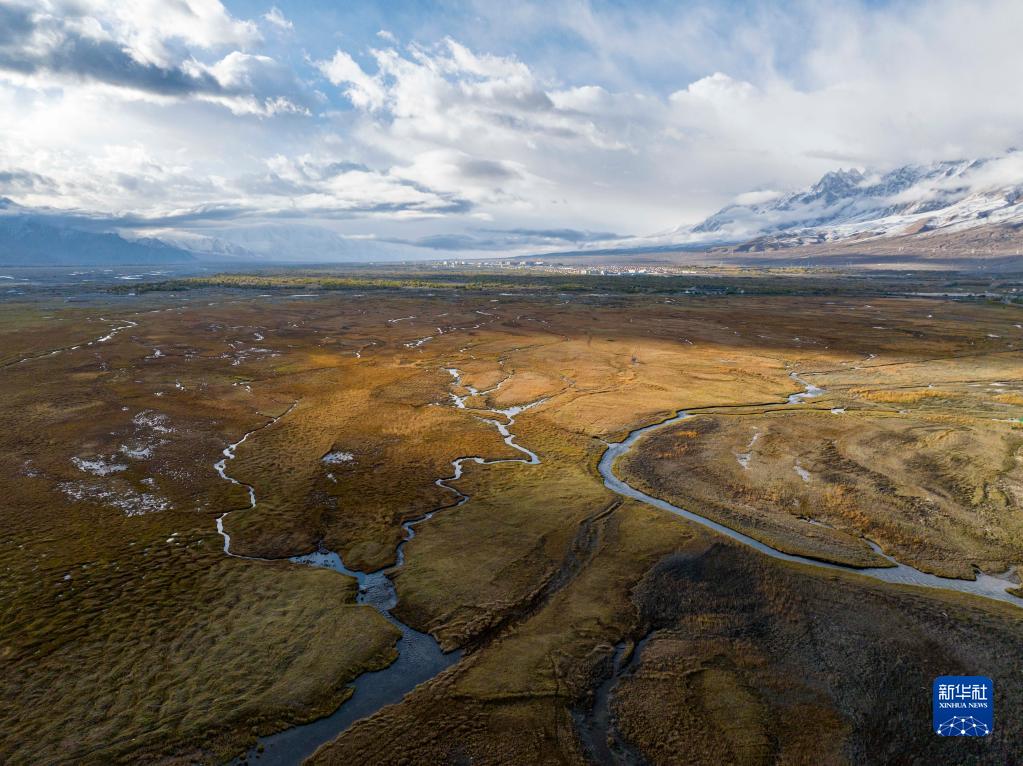 这是10月4日在新疆塔什库尔干塔吉克自治县拍摄的金草滩湿地公园景观(无人机照片)。