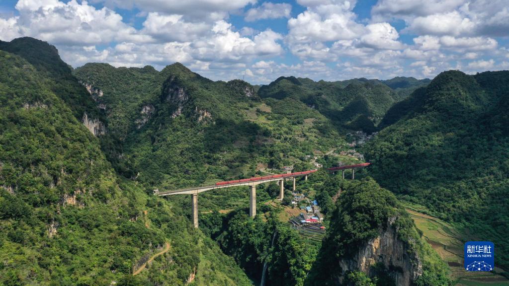 这是广西南昆线清水河大桥秋日风光(10月4日摄,无人机照片)。