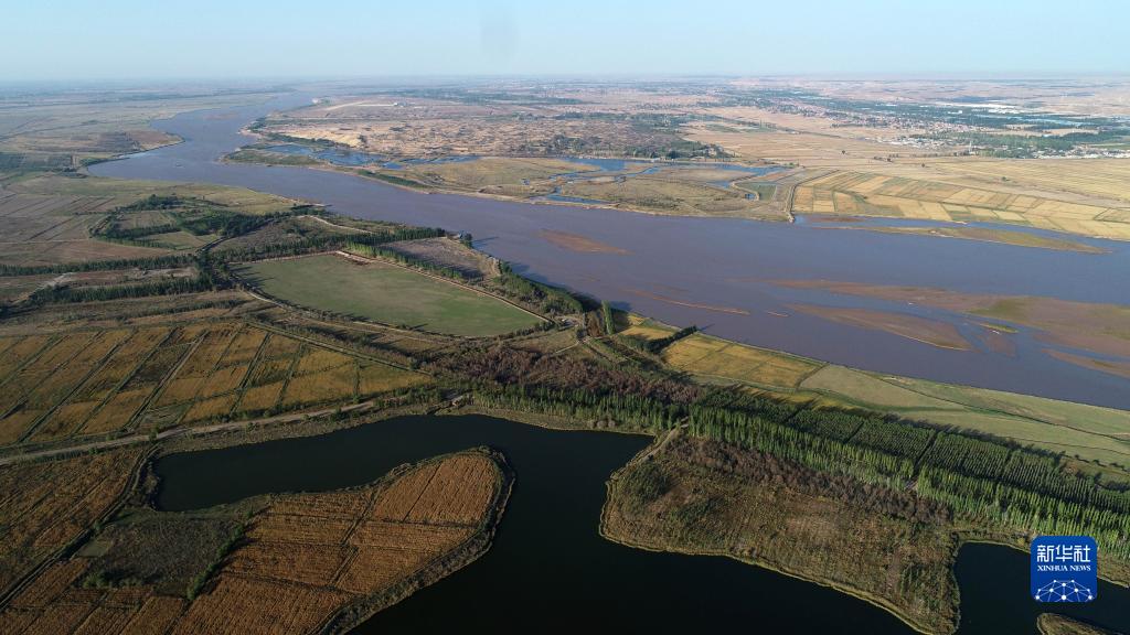 这是10月4日在宁夏银川市贺兰县拍摄的黄河秋景(无人机照片)。