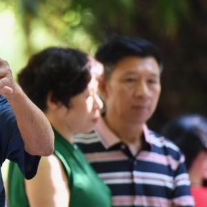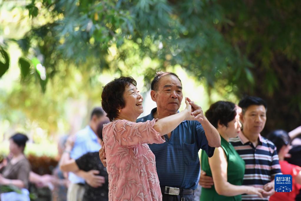 10月4日,福州市金山公园内老人们在跳舞休闲。