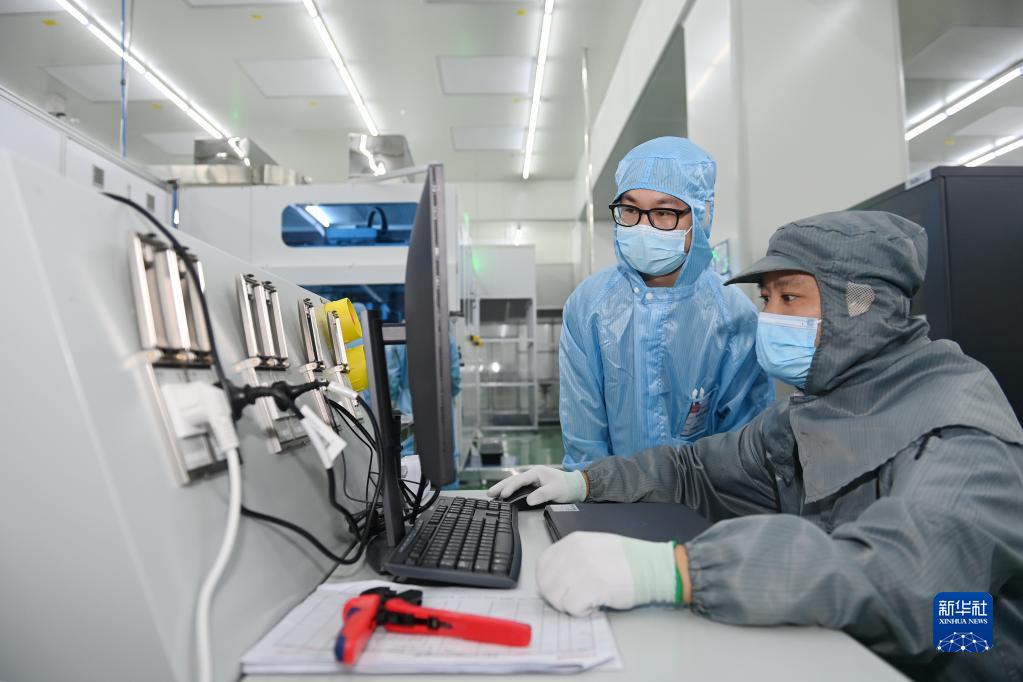 科研人员在秦创原光伏创新中心——隆基中央研究院中试线上工作(2022年9月23日摄)。新华社记者 李一博 摄