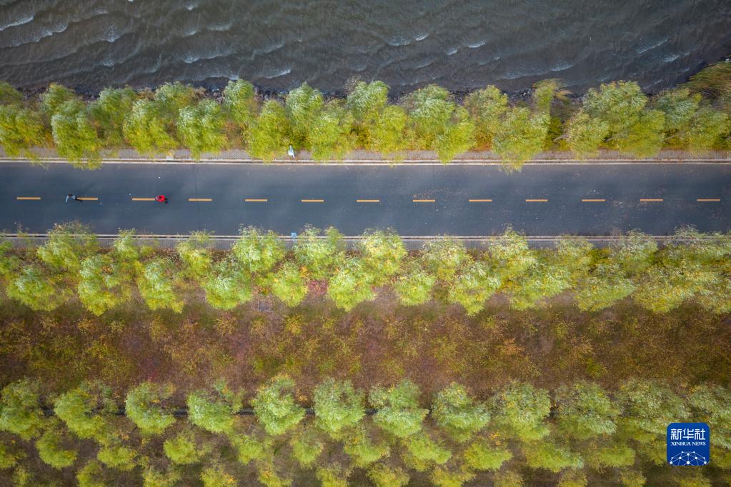 这是10月4日拍摄的哈尔滨呼兰河口湿地公园内的景色(无人机照片)。