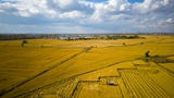 新疆塔城市也门勒乡阔克加依达克村村民抢抓有利天气晾晒玉米(10月5日摄,无人机照片)。