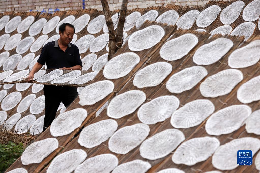 10月5日,河北省邢台市广宗县大平台乡刘南苏村村民在房屋前晾晒粉皮。