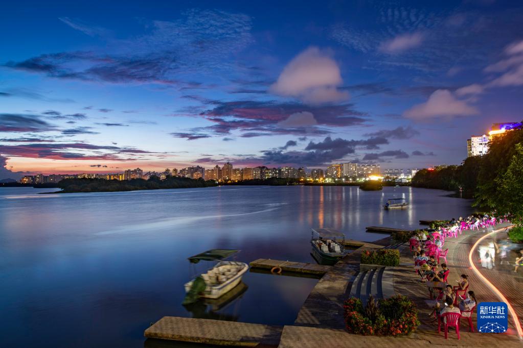 海南省琼海市市民在溪仔码头休闲(2022年7月15日摄)。