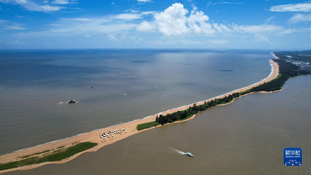 这是2022年10月3日在海南省琼海市博鳌镇拍摄的玉带滩(无人机照片)。
