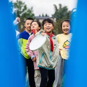 10月5日,在天华百卉园内,小朋友在户外玩耍。
