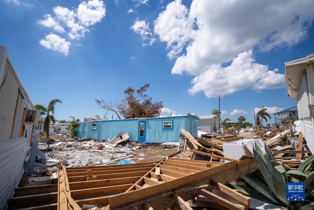 这是10月4日在美国佛罗里达州迈尔斯堡拍摄的遭飓风“伊恩”破坏的建筑。 新华社发(罗兰多·洛佩斯摄)