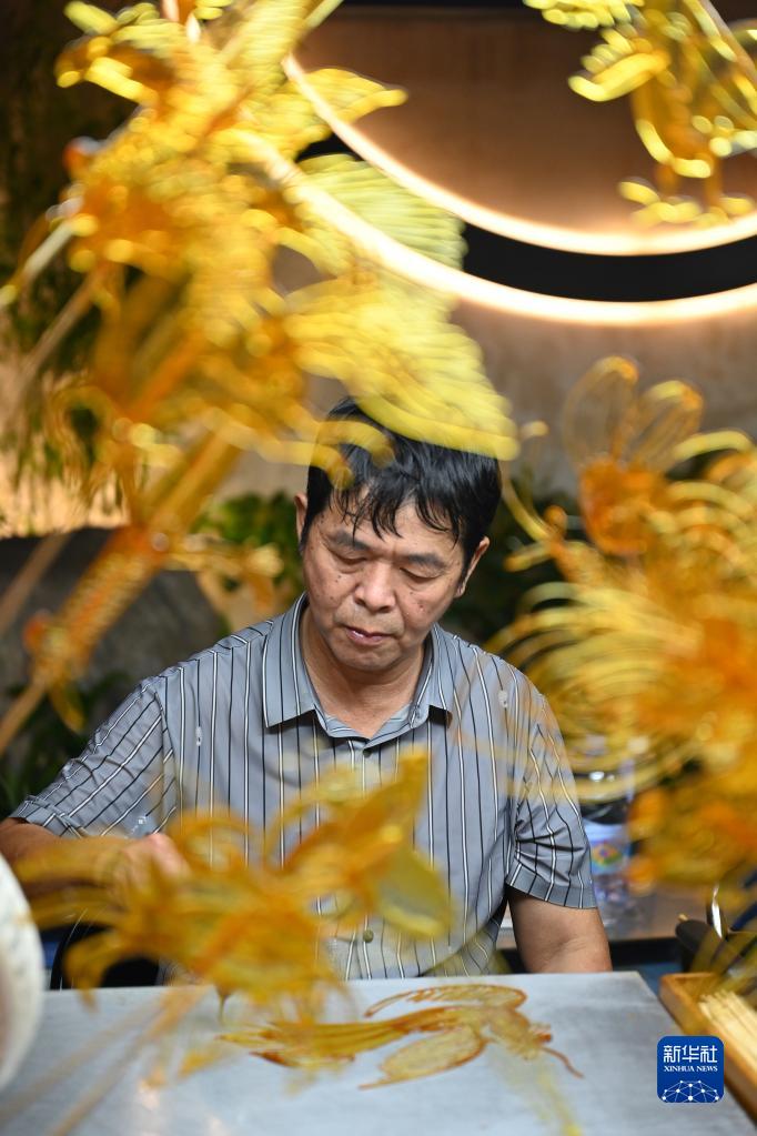 10月6日,民间手工艺人在福州三坊七巷历史文化街区摆摊制作糖画。