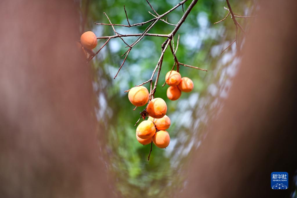 在山东省青州市云门山森林公园拍摄的柿子树上的果实(10月4日摄)。