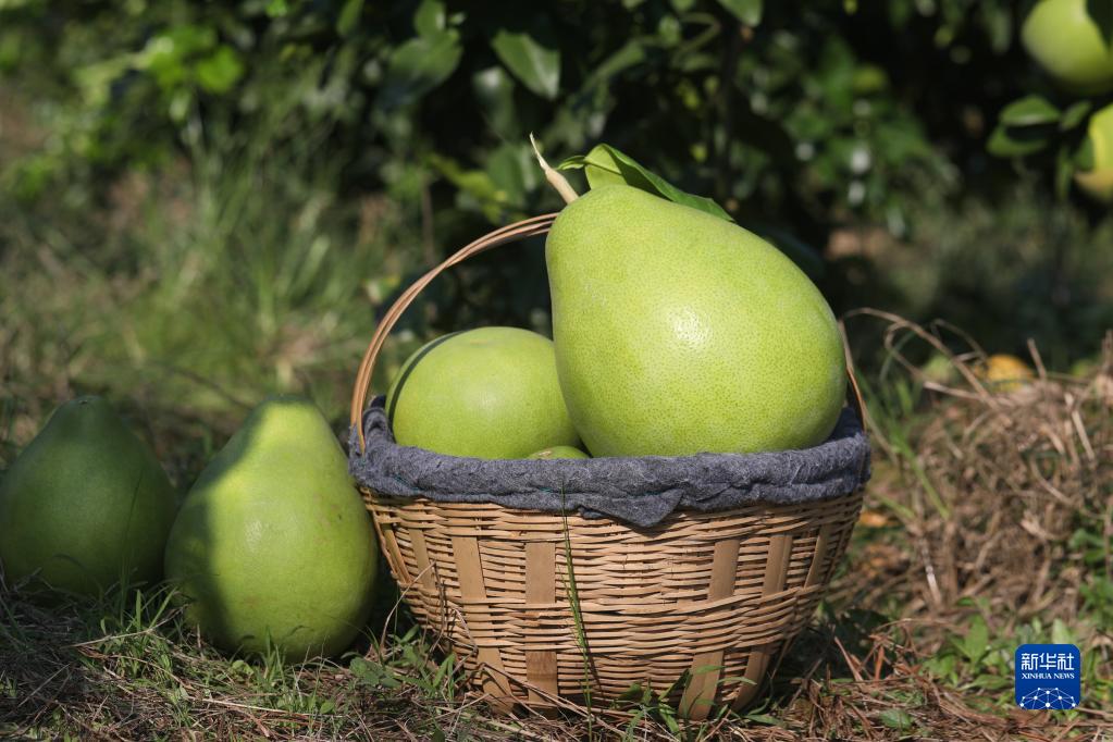 在四川省武胜县鸣钟镇拍摄的红心蜜柚(10月1日摄)。