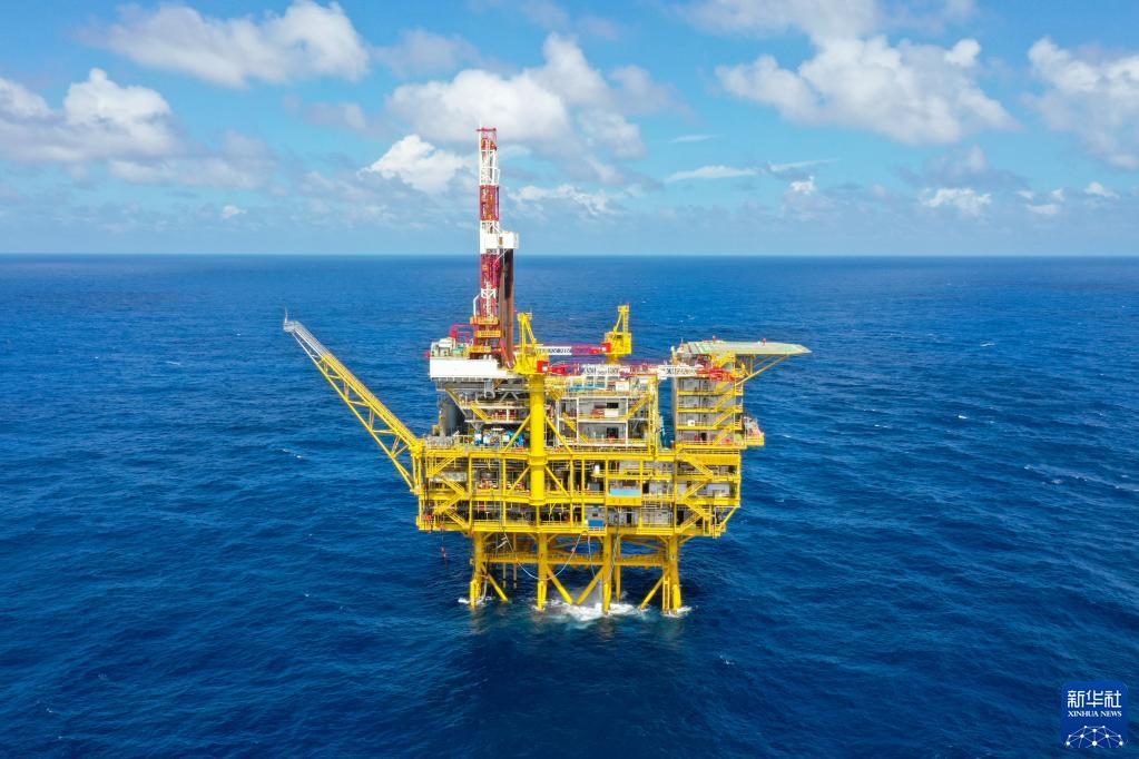 这是深水导管架平台“海基一号”(无人机照片,9月30日摄)。
