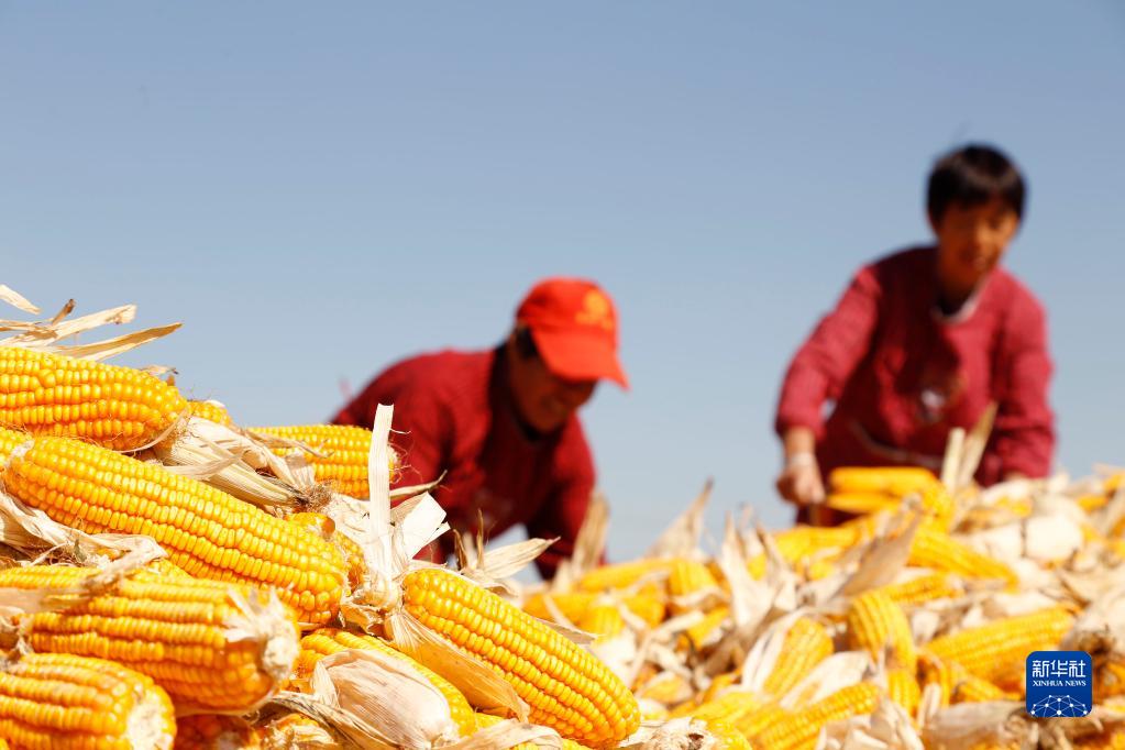 10月9日,河北省邢台市南和区贾宋镇郄村村民在晾晒玉米。
