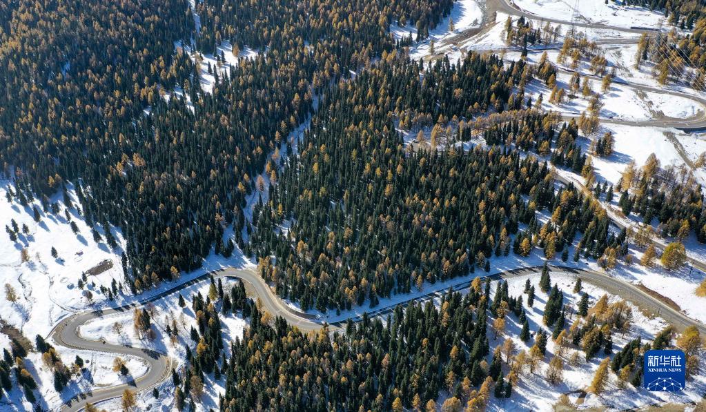 连接新疆哈密市区与巴里坤哈萨克自治县的公路翻越东天山(2022年10月4日摄,无人机照片)。