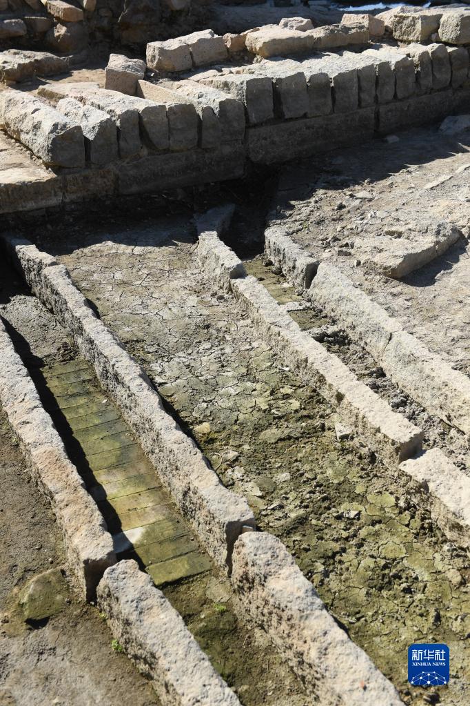 这是朔门古港遗址发掘出的古水渠(10月10日摄,无人机照片)。