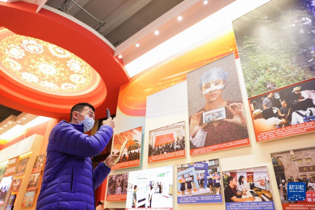 10月10日,观众在“奋进新时代”主题成就展第五单元“坚定文化自信 建设社会主义文化强国”展厅内参观。新华社记者 张玉薇 摄