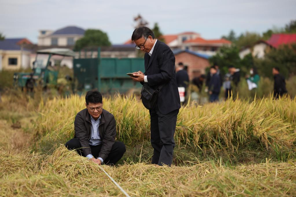 新华全媒+丨湖南浏阳:“一季杂交稻+再生稻”粮食周年生产模式再生季稻测产验收