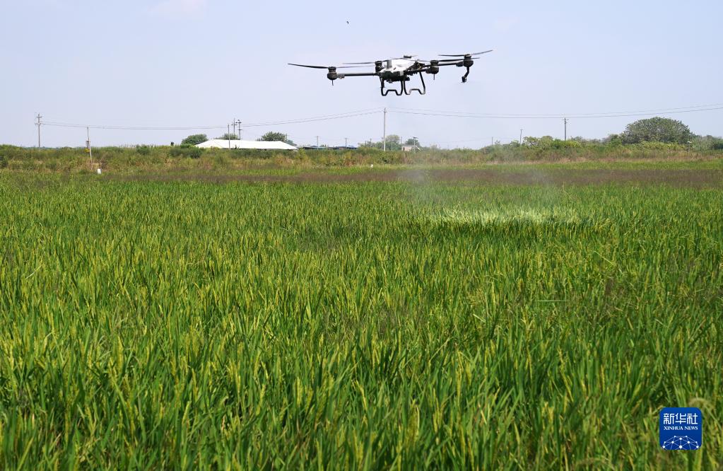 在江西省南昌县大田农社,无人机在给稻田施肥(9月16日摄)。无人机施肥更加高效、精准,缩短了施肥时间,提高了肥料使用率。