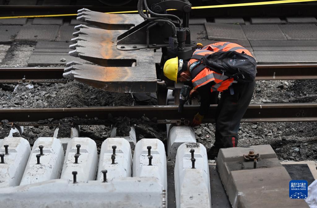 连日来,中国铁路北京局集团有限公司天津工务段在天津西站线路设备提升改造会战中,为充分利用“天窗”时间,使用中型换枕机进行机械化换枕作业,相较原来人工换枕的方式大大提高了施工效率。