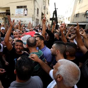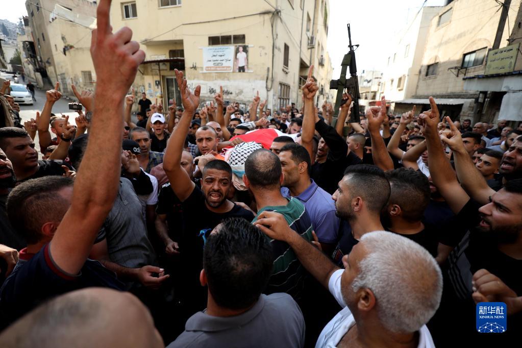 10月14日,在约旦河西岸北部城市杰宁,人们为被以色列军队打死的巴勒斯坦人送葬。