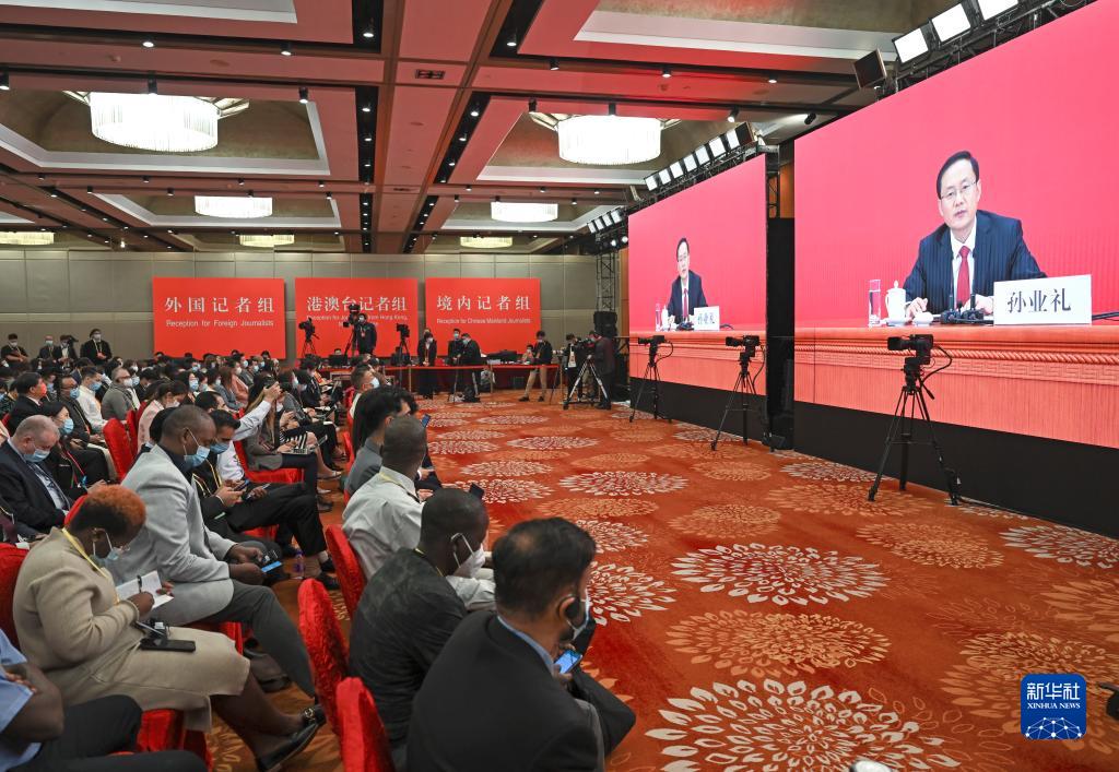 10月15日,中国共产党第二十次全国代表大会新闻发言人孙业礼在北京人民大会堂举行新闻发布会。这是分会场。