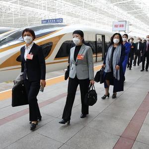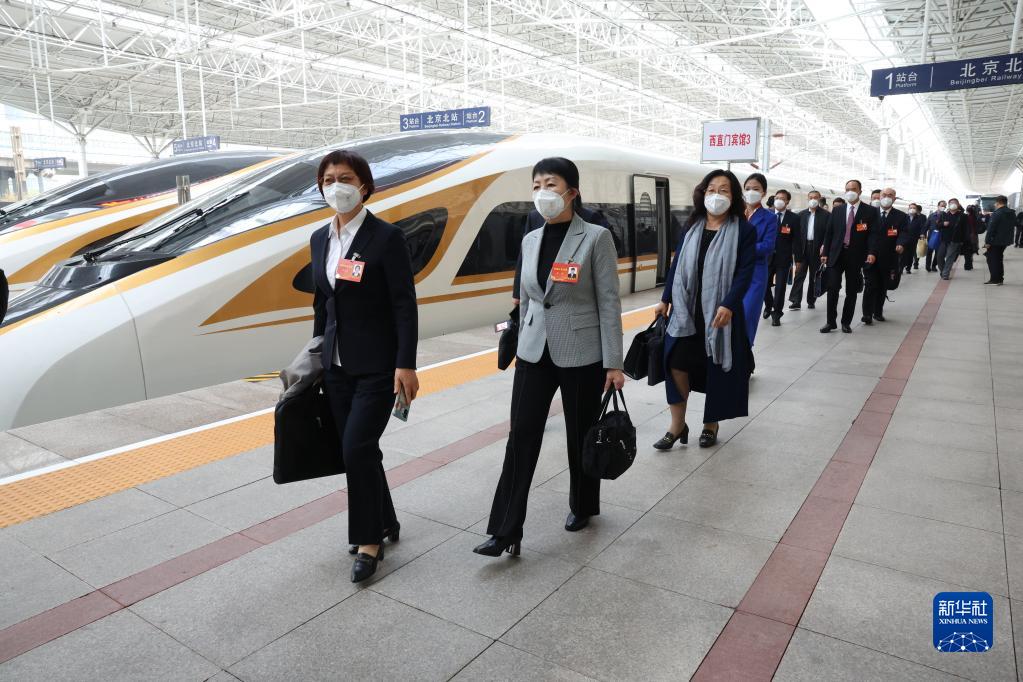 10月13日,来自内蒙古自治区的党的二十大代表乘高铁抵达北京北站。这是当日首个抵京的京外代表团。