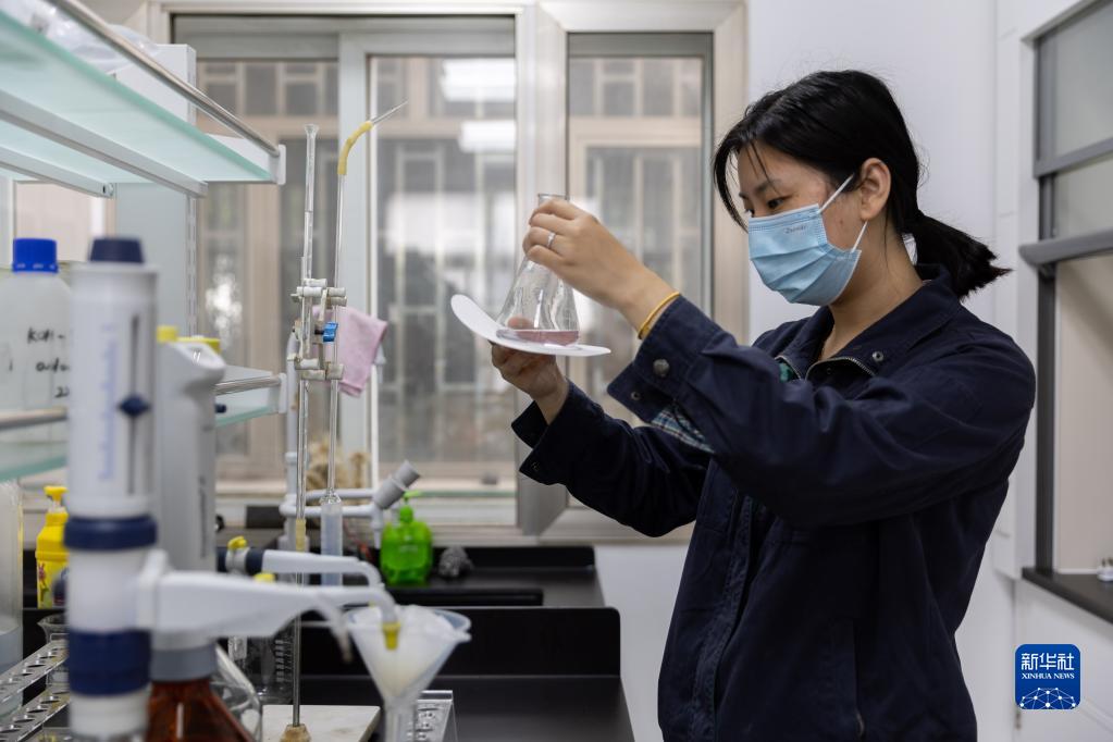 10月14日,在中央储备粮上海直属库检测中心,徐烨进行稻谷的脂肪酸值滴定实验。