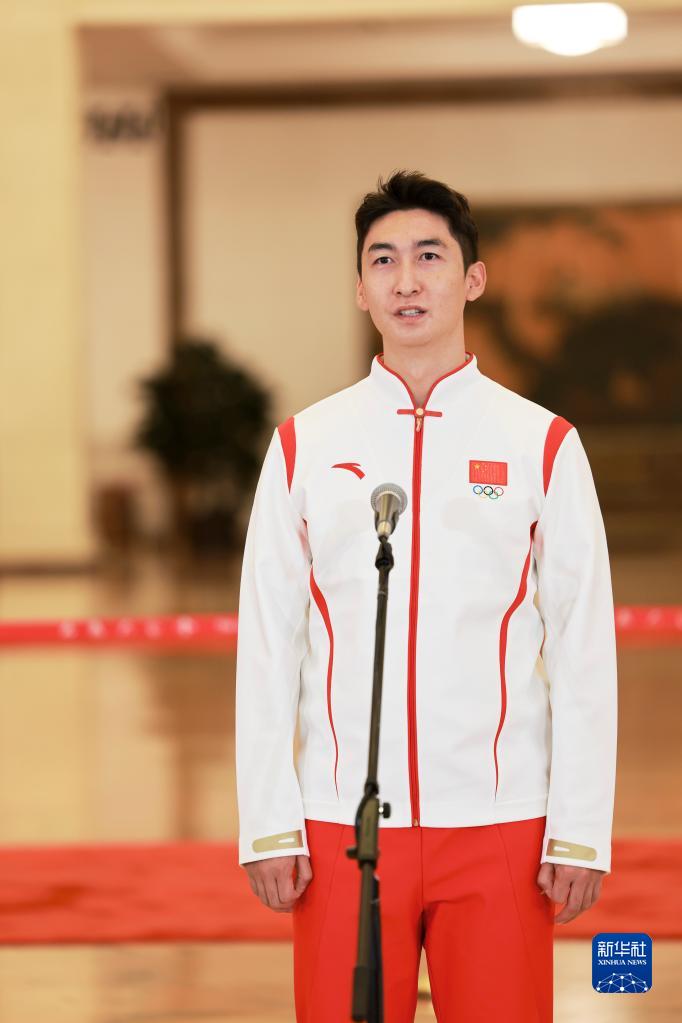 这是开幕会前,武大靖代表接受采访。