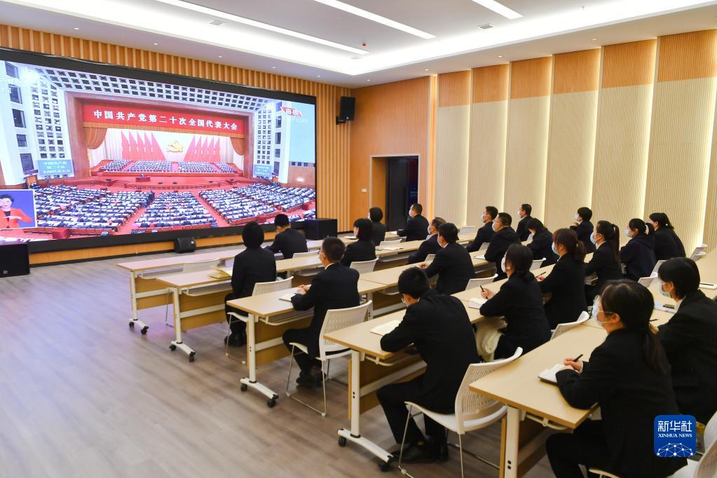 10月16日,延安革命纪念馆党员干部收看中国共产党第二十次全国代表大会开幕会。