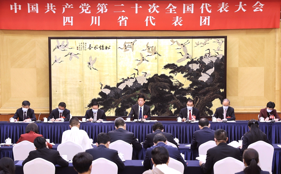 10月17日,栗战书同志参加他所在的党的二十大四川代表团讨论。新华社记者 庞兴雷 摄