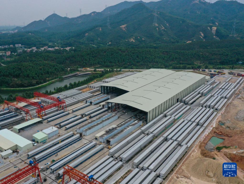 这是中铁十一局黄茅海跨海通道智慧梁场(10月18日摄,无人机照片)。