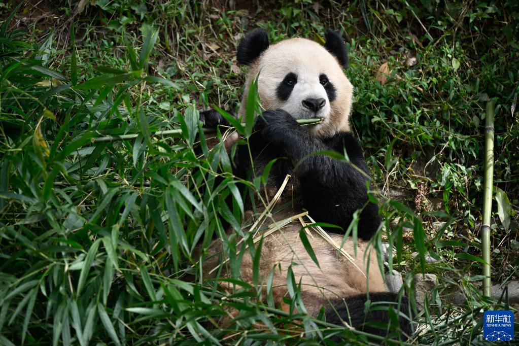 10月17日,在中国大熊猫保护研究中心雅安基地,大熊猫“京京”在吃竹子。