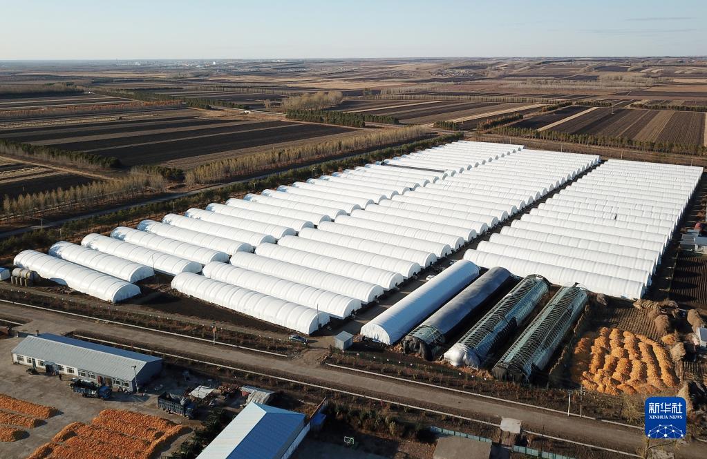 这是10月17日拍摄的黑龙江省拜泉县兴国乡食用菌产业园区的大棚(无人机照片)。