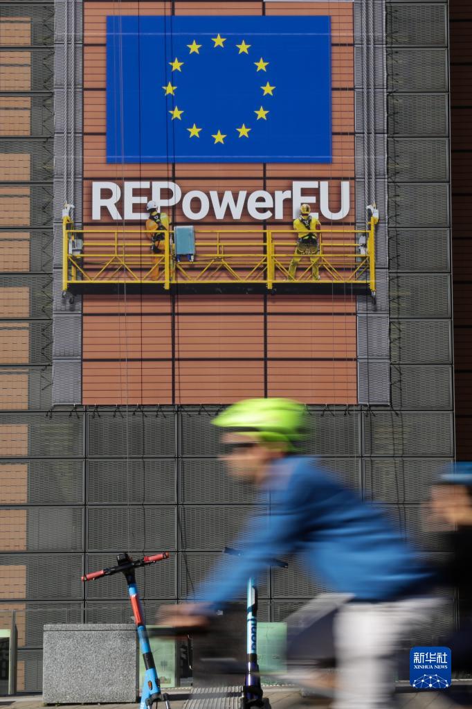 10月18日,骑行者经过位于比利时布鲁塞尔的欧盟委员会总部大厦。