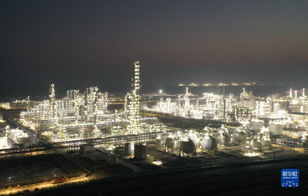 10月19日晚拍摄的天津市滨海新区南港工业区景象(无人机照片)。