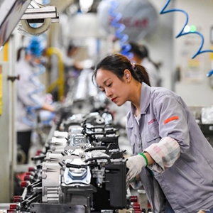 10月19日,在位于重庆市璧山区的重庆大江动力设备制造有限公司,工人在生产车间作业。