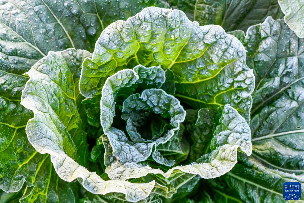10月17日,河北省玉田县亮甲店镇田间的白菜结霜。