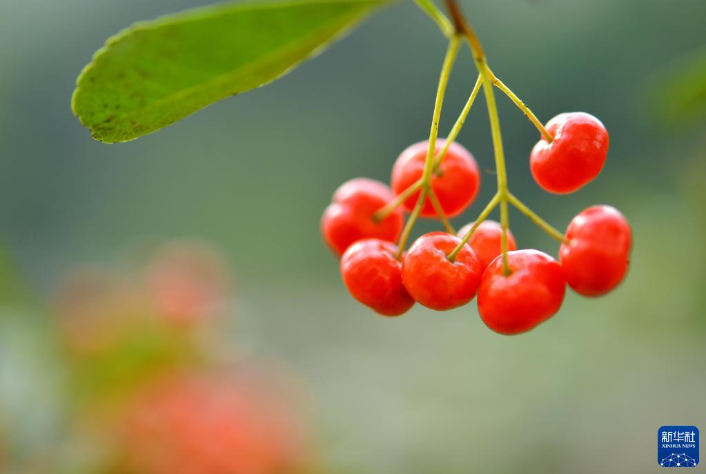 10月17日,在湖北省恩施土家族苗族自治州宣恩县贡水河国家湿地公园,果子成熟。