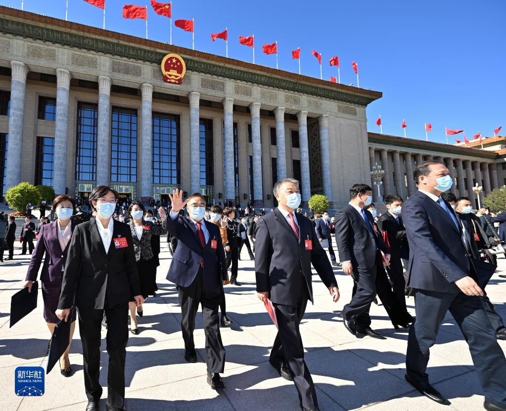 10月22日,中国共产党第二十次全国代表大会闭幕会在北京人民大会堂举行。这是闭幕会后,代表走出人民大会堂。