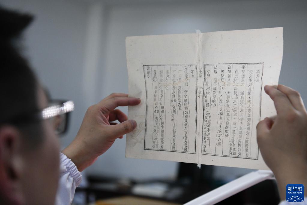 10月20日,在安徽中医药大学图书馆古籍部,古籍修复师茆可人进行古籍修复。