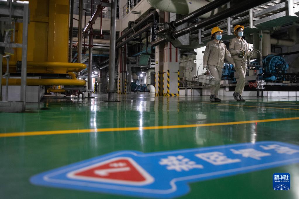 10月24日,在大唐绥化热电有限公司供热车间内,化验员准备进行采样。