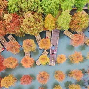 江苏泗洪洪泽湖湿地景区占地面积5.2平方公里,生态环境优美。深秋时节,湿地景区内一步一景,五彩斑斓,美不胜收。