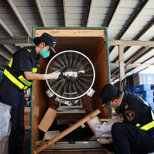 10月26日,拱北海关关员为本届航展首批境外参展物资办理验放手续。新华社发(俞波 摄)
