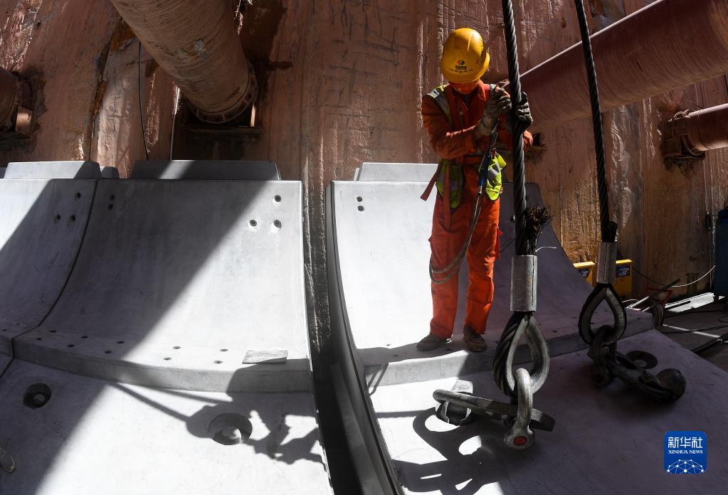 为实现大型预制构件的精准吊装,中国电建水电七局采用了自主研发的180吨智能型龙门吊及其自平衡旋转式专用吊具,辅以多功能辅助拼装台车,依次将预制构件吊装到位并拼装成型,提高了施工效率。