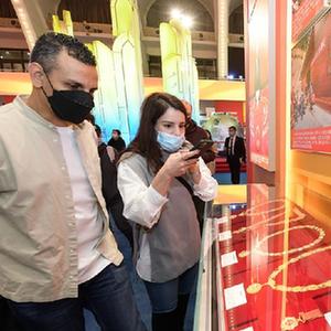 “天问一号”着陆器模型、“奋斗者”号全海深载人潜水器模型……室外展区,一件件展现新时代中国人上九天、下五洋壮志豪情的展品,吸引外宾们拍照留影。