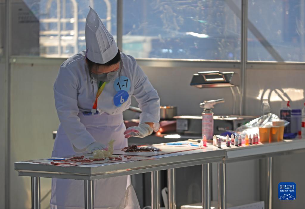 10月27日,参赛选手参加糖艺/西点制作项目比赛。