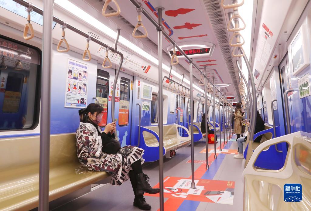 10月28日拍摄的运行中的上海消防119号地铁主题列车内景。