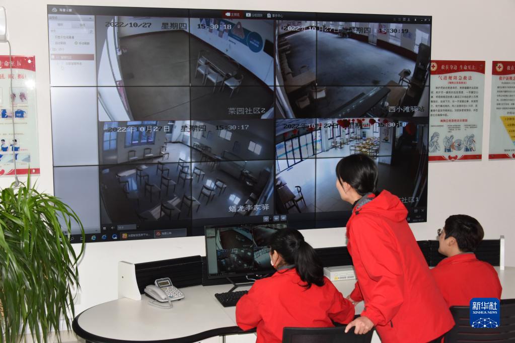 10月27日,在青岛西海岸新区泊里镇封家社区居家养老服务中心,工作人员通过网络远程对辖区的养老服务驿站进行监管。